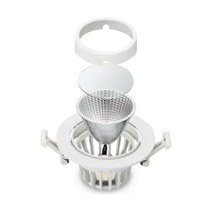Philips Spot LED Greenspace Accent Cardanic Aluminium Blanc 31W 3900lm 36D - 930 Blanc Chaud | 163mm - IP20 - Meilleur Rendu Des Couleurs - Dali Dimmable est un spot LED encastrable. Ce luminaire est conçu pour un éclairage d’accentuation pour un usage domestique ou bien professionnel. LED Intégré, ce spot LED Philips en Aluminium a besoin d’une place nécessaire de mm de largeur et mm de profondeur. Ce luminaire est compatible avec une ampoule GU10, il est important de faire attention si vous décidez de changer d’ampoule.